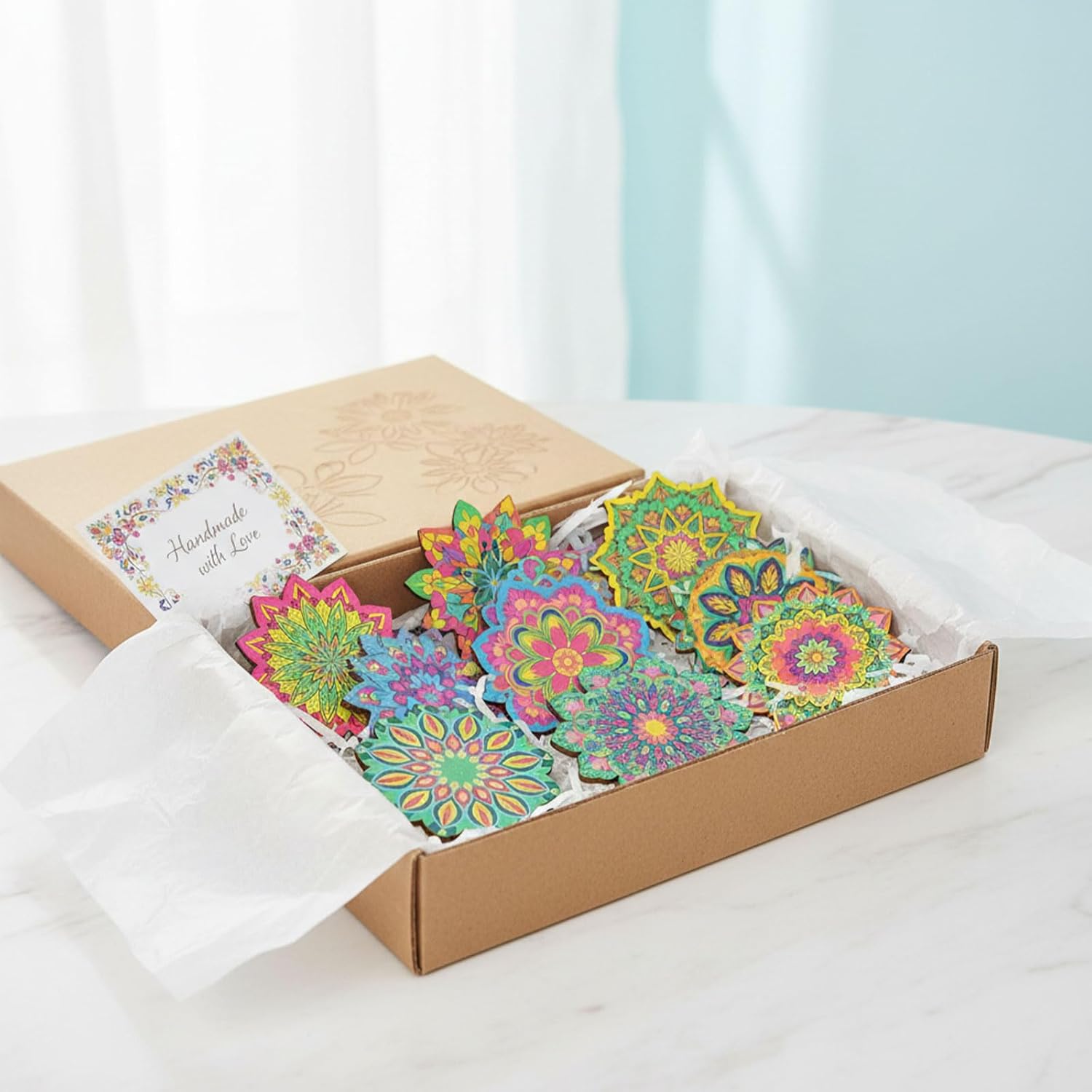 10 PCS Diwali Rangoli Mats for Decoration Wooden Rangoli Stencils DIY, Wooden Decorative Items, Suitable for DIY Painting and Home Craft Projects(7.8Inch x 7.8Inch)