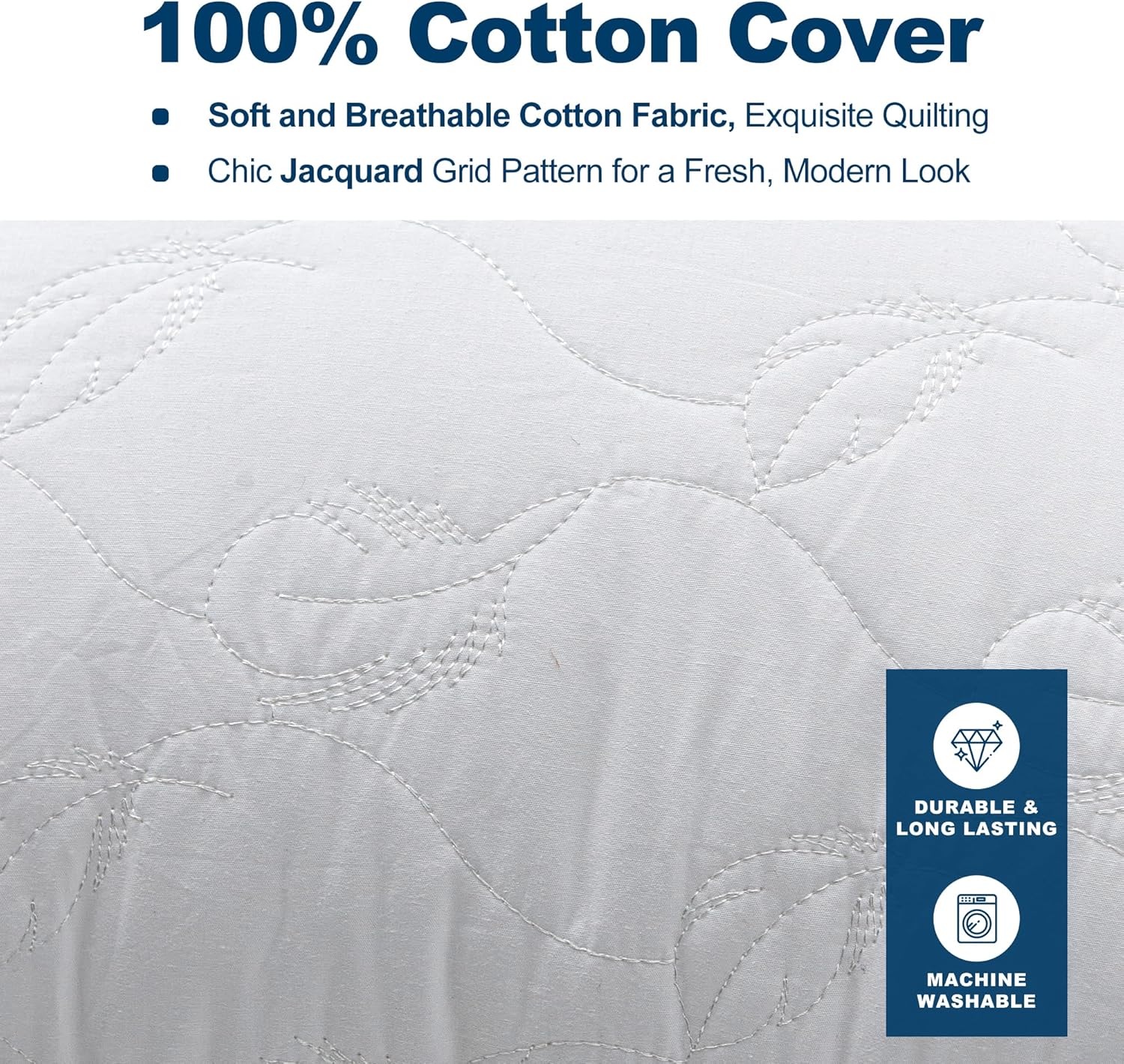 100% Cotton Cover: Encased in a high-density, 100% cotton fabric, the cover is breathable, skin-friendly, and durable. It resists pilling, stays smooth to the touch, and enhances airflow for a fresher feel compared to synthetic covers