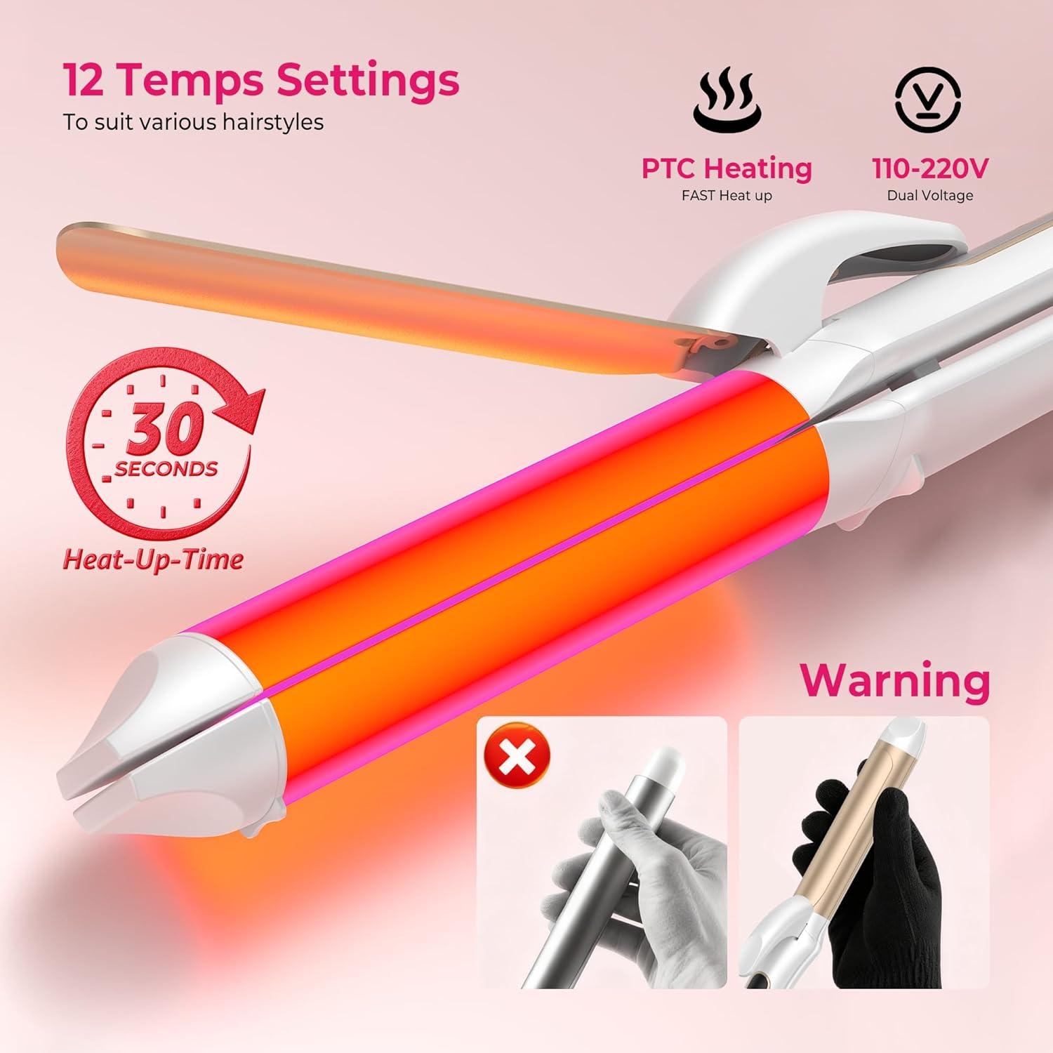 12 Adjustable Heat Settings for All Hair Types Equipped with 12 precise temperature levels, the 1.25-inch curler caters to fine, thick, and all hair textures in between. The ceramic coating locks in moisture and reduces heat damage, delivering salon-quality results with every use.