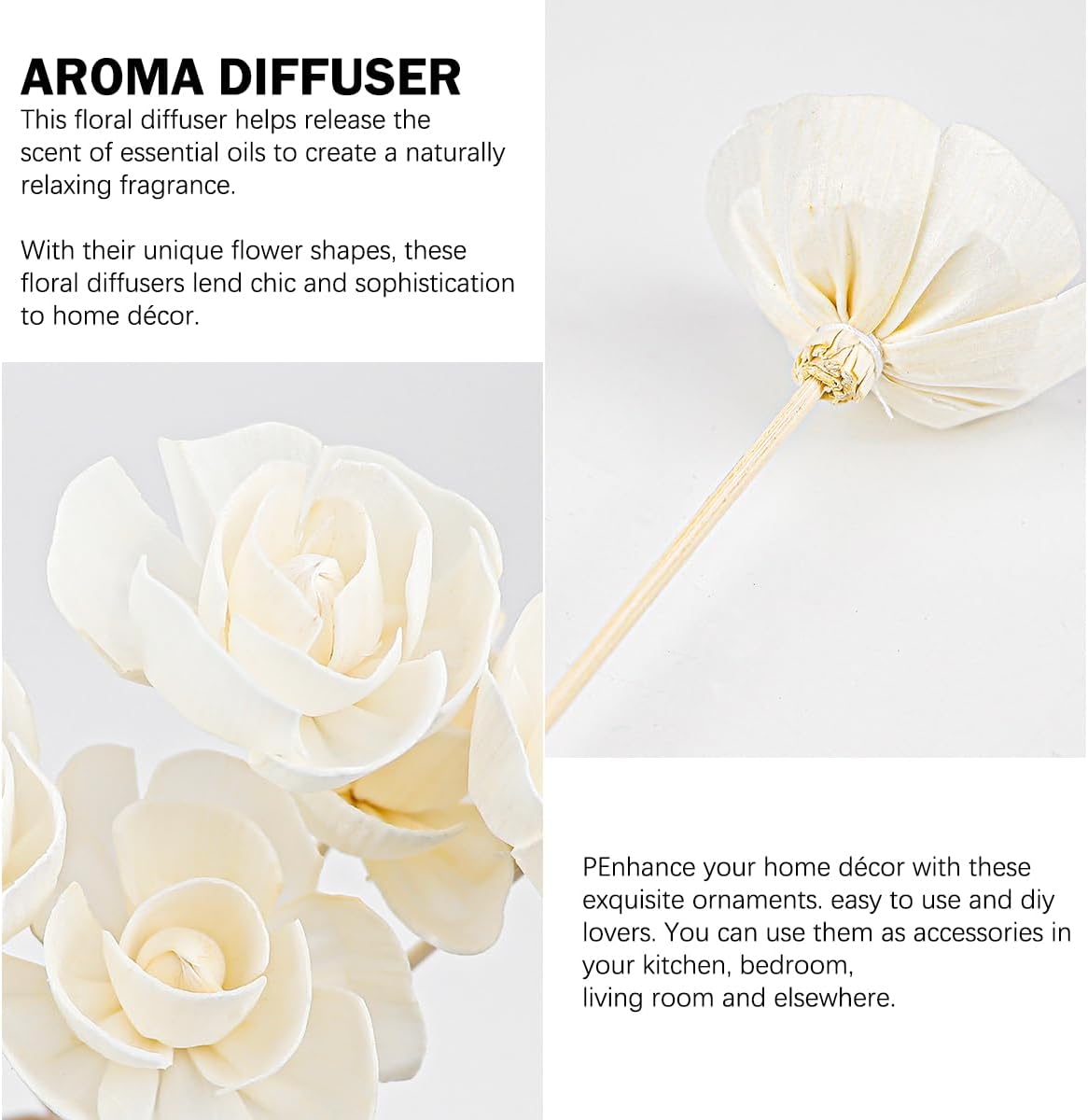 Flower Appearance: The diffuser has a Camellia appearance, delicate and beautiful, the diffuser is placed in the aromatherapy glass container, not only enhances the beauty of the container, but also can be placed as a handicraft.