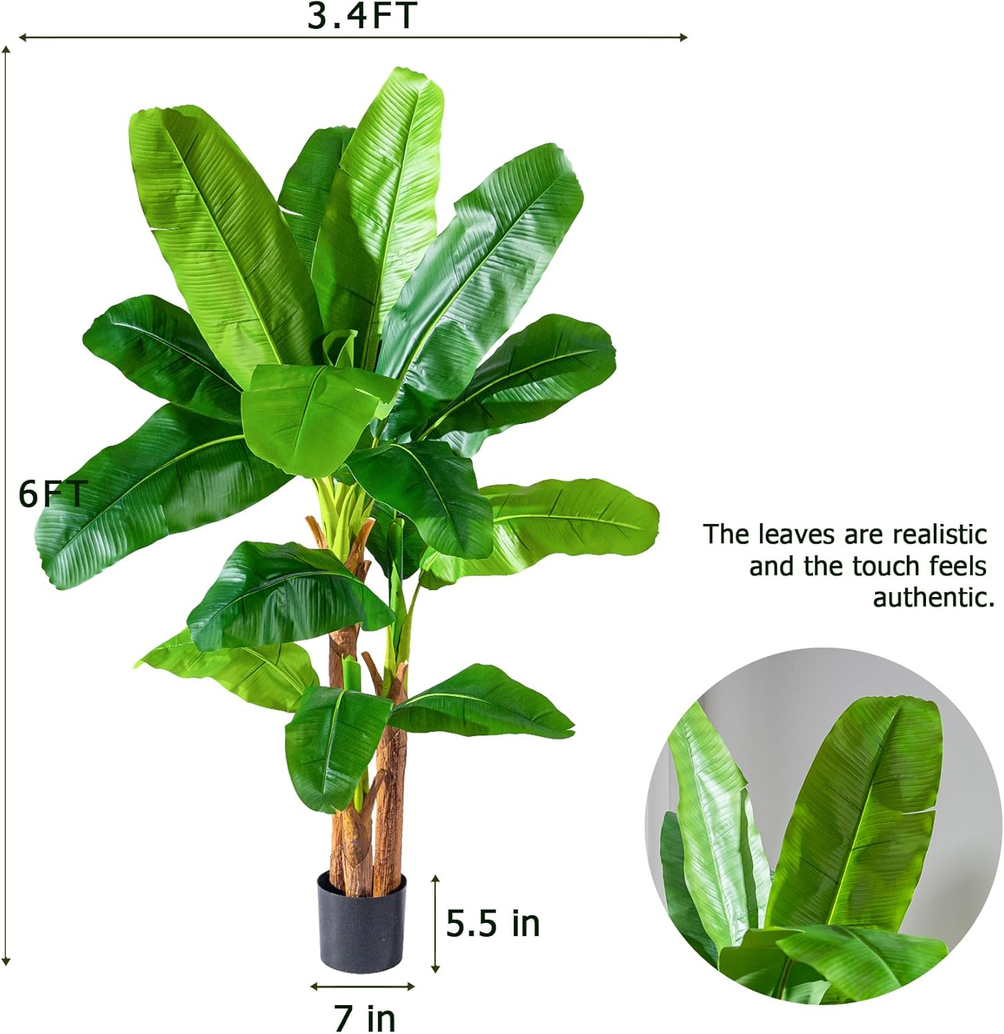 Impressive Height: Standing at an impressive 6 feet tall, the artificial banana tree makes a bold statement, instantly refreshing your living space and creating a serene atmosphere with its lush, oversized leaves.