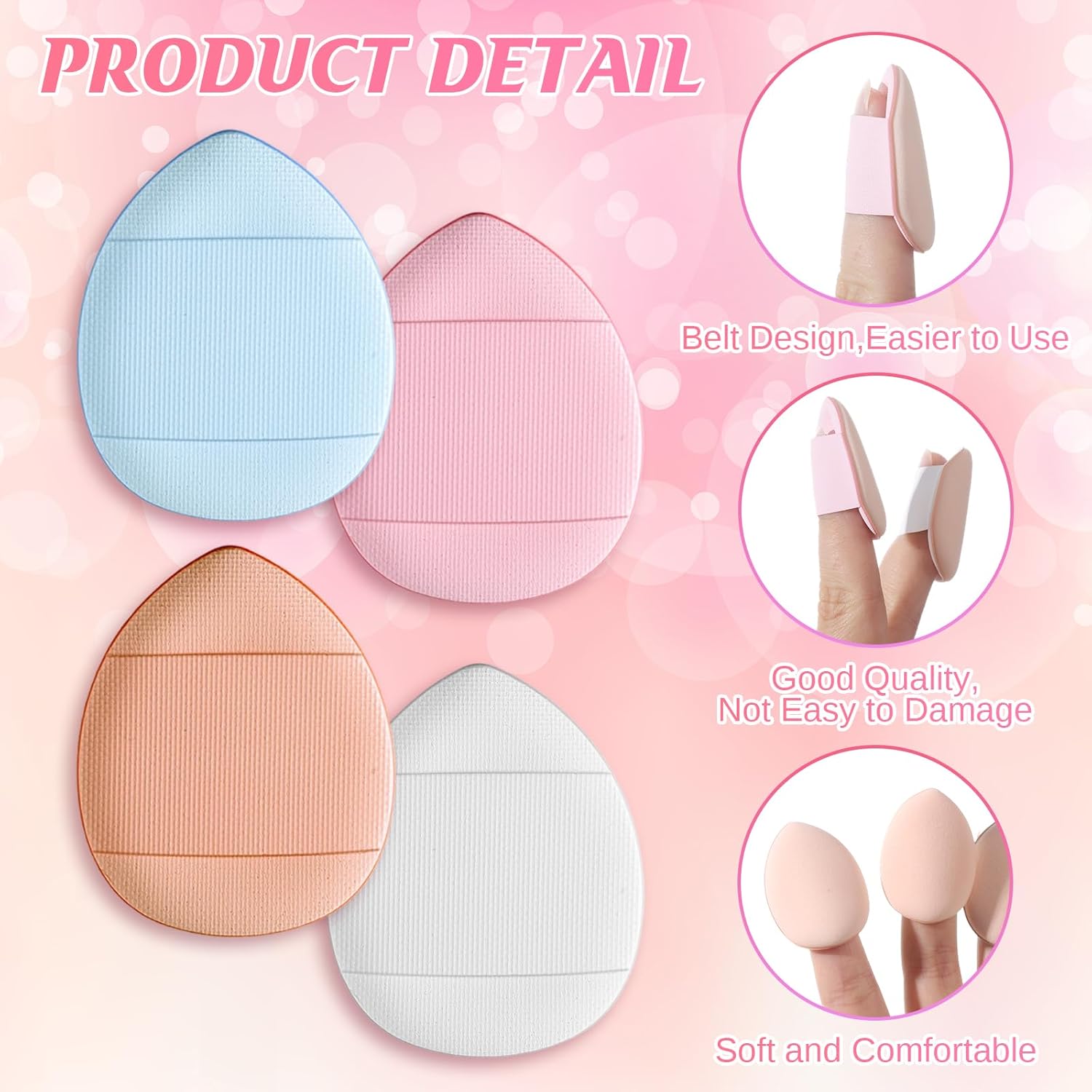 【Mini Size Design】Each makeup puff measures approximately 1.57 x 1.18 inches (4 x 3 cm), thickness: 7mm/0.27inch, fitting perfectly on your finger. This mini size allows for precise application, especially in detailed areas like under the eyes, nose sides, and eyelids.