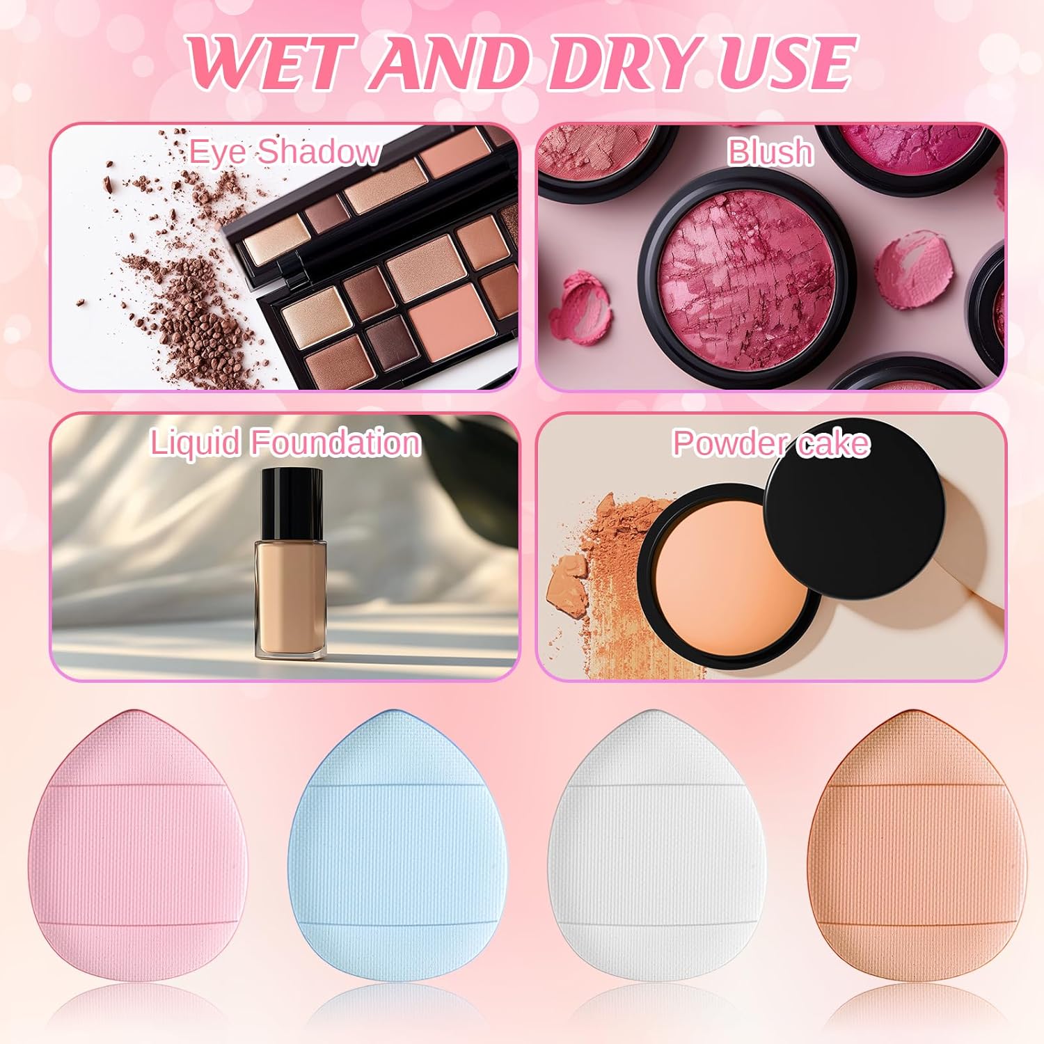 【Versatile Use】Suitable for both dry and wet cosmetics, these powder puffs can be used with face cream, concealer, powder, foundation, body powder, blush, and eye shadow. This versatility helps achieve a more delicate makeup look while saving product.