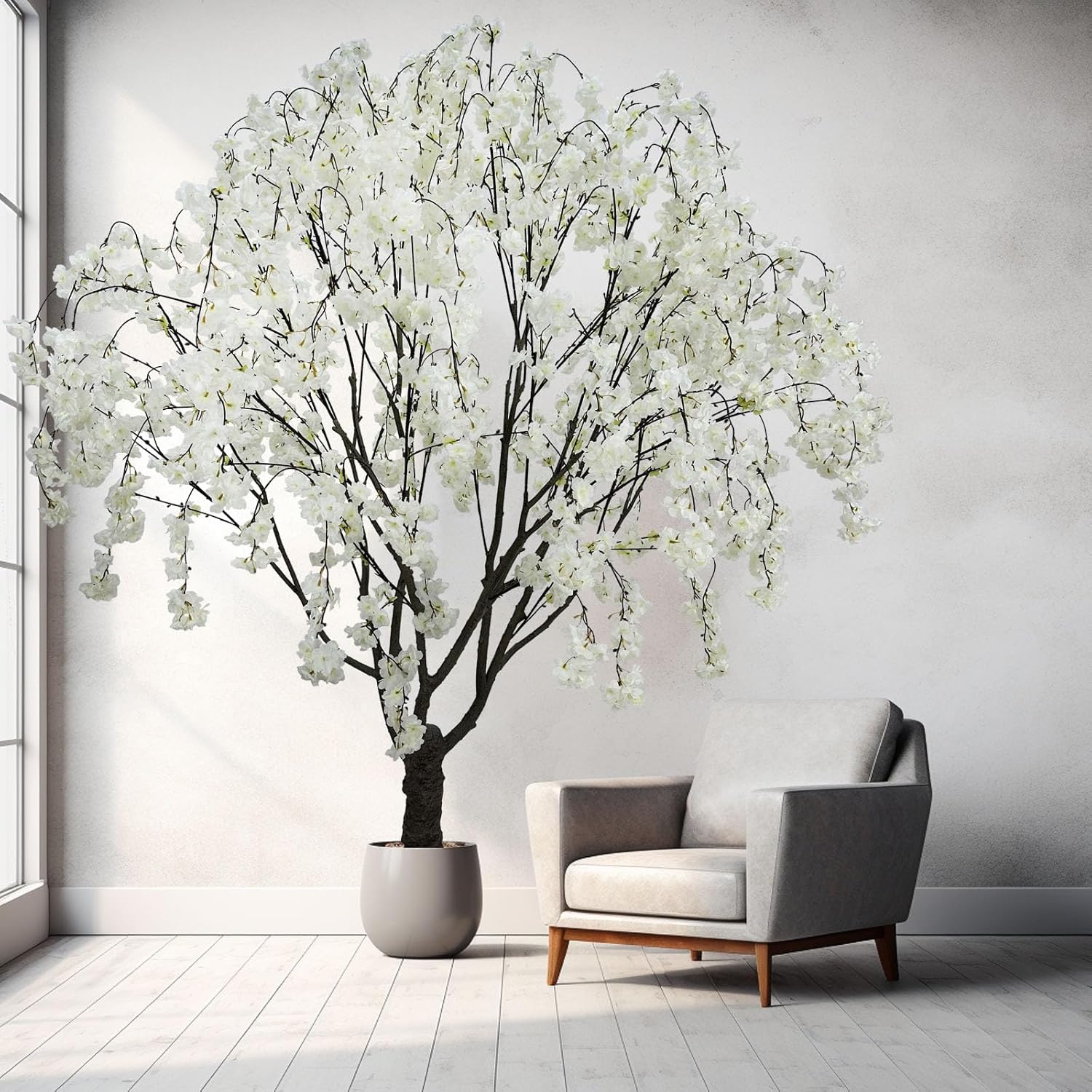 LIFELIKE APPEARANCE: Features cascading branches filled with delicate white cherry blossoms, creating a realistic and elegant look