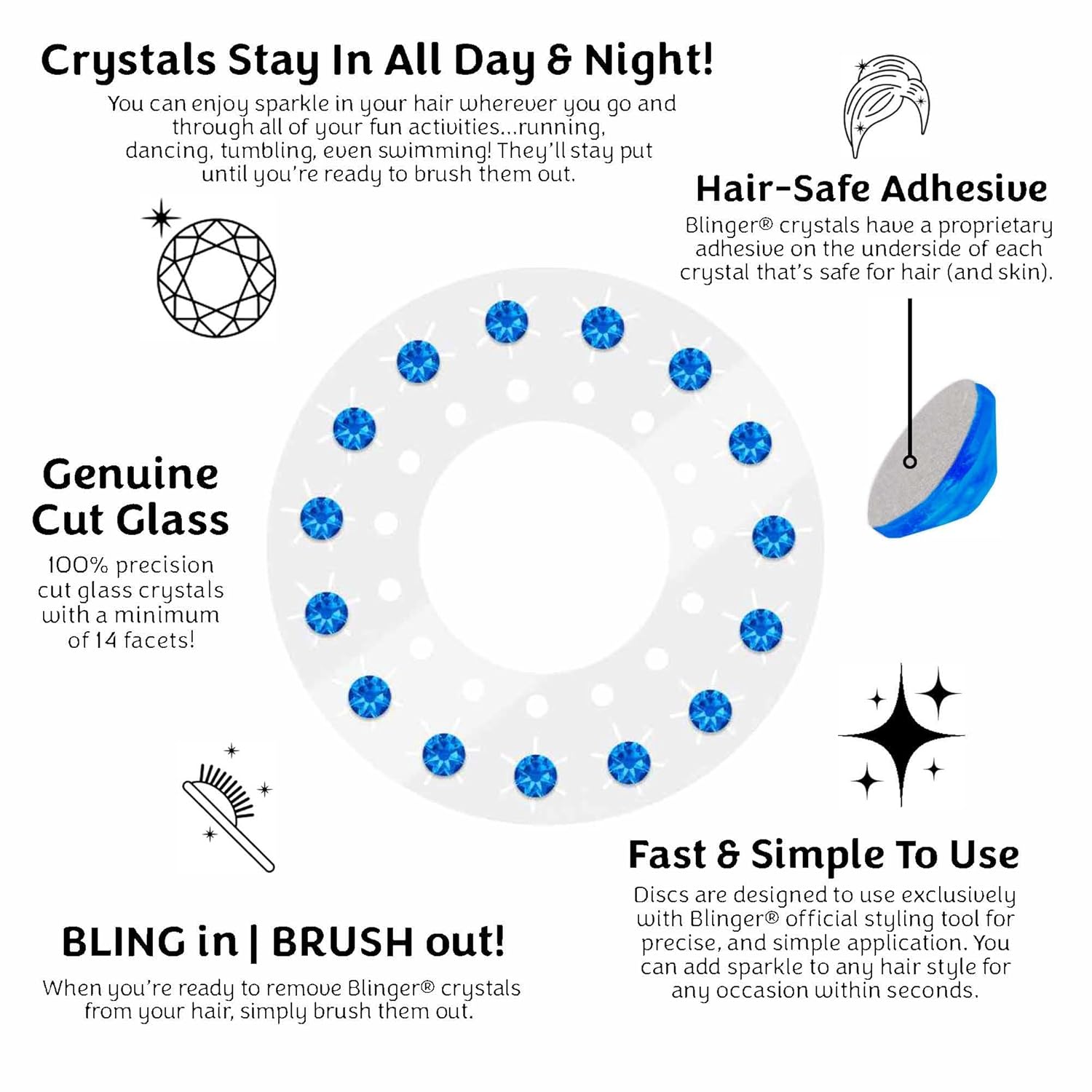 PRECISION-CUT GLASS CRYSTALS: Add next-level glam to your look with 75 dazzling, precision-cut glass crystals! Perfect for replenishing your blinger collection and keeping the sparkle alive every day.