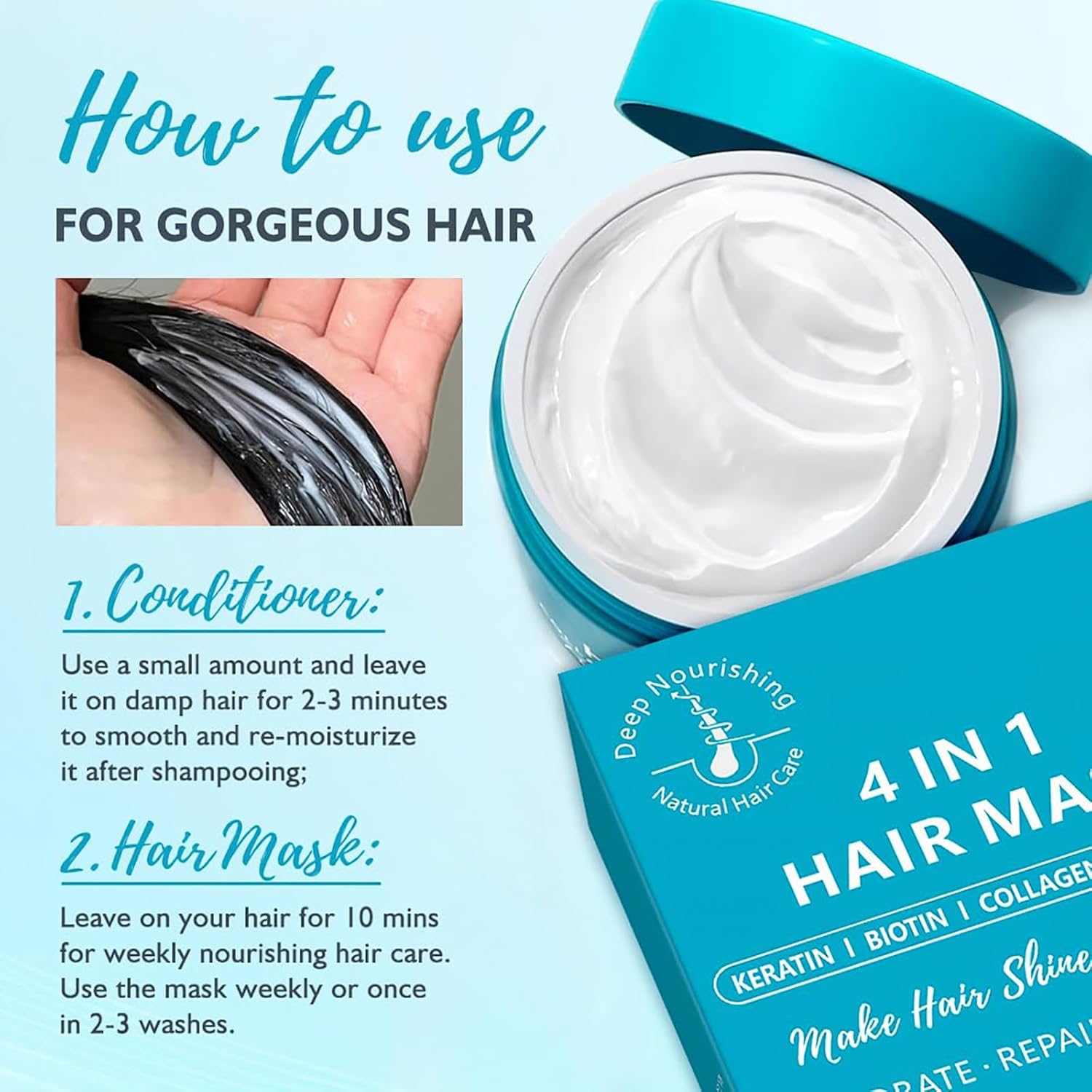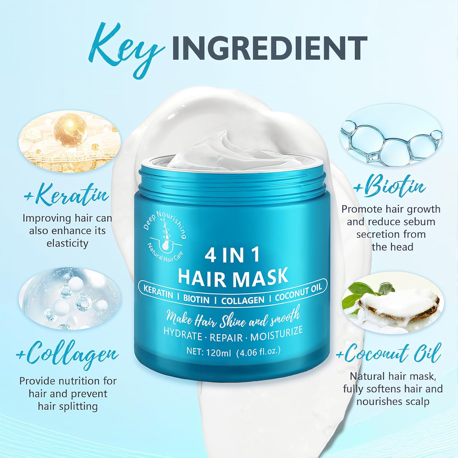 Deep Conditioning Hair Mask for Damaged Hair Treatment – Keratin Hair Care for Hydrating Repair for Dry, Curly, Color-Treated & Frizzy Hair – Controls Frizz, Fixes Split Ends, Boosts Shine, 4.06 fl.oz