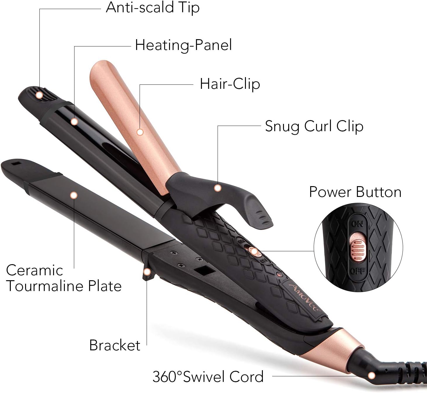 [2-in-1 Curling & Straightening Tool] Switch the travel curling iron dual voltage from straight to curly with just one button, no need for multiple tools. The mini curling iron travel size helps you create super smooth straight hair, delicate curls or cascading wavy curls for a beautiful look