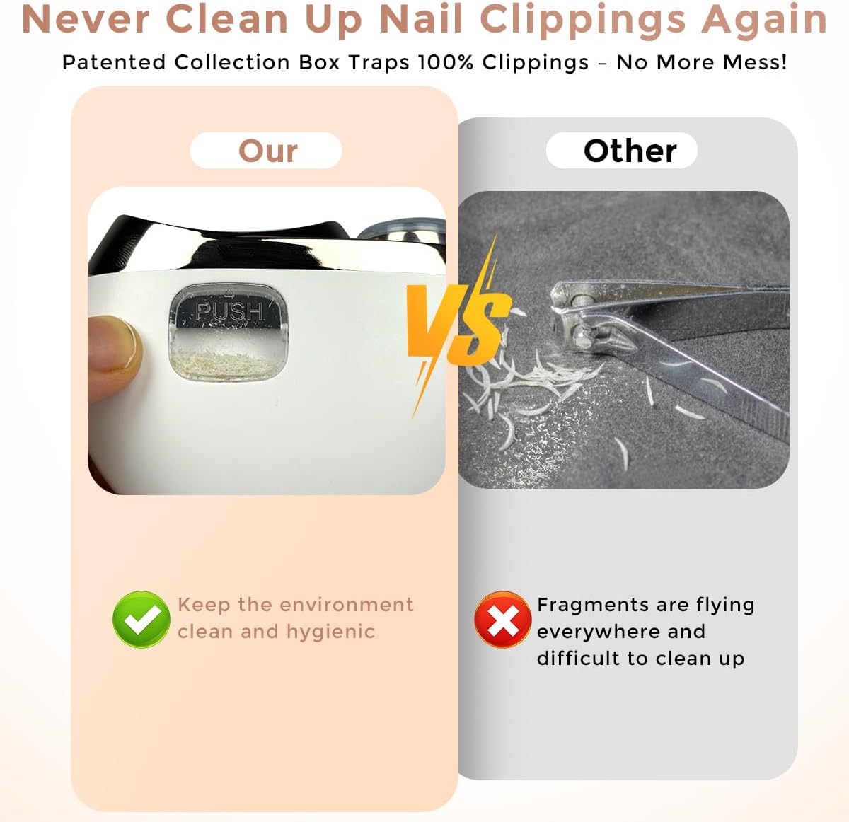 【Easy to Use】 Unlike traditional nail clippers, our Electric Nail Clippers make nail trimming easy, clean, and smooth. Keep your nails looking neat effortlessly with this innovative tool that simplifies your grooming routine