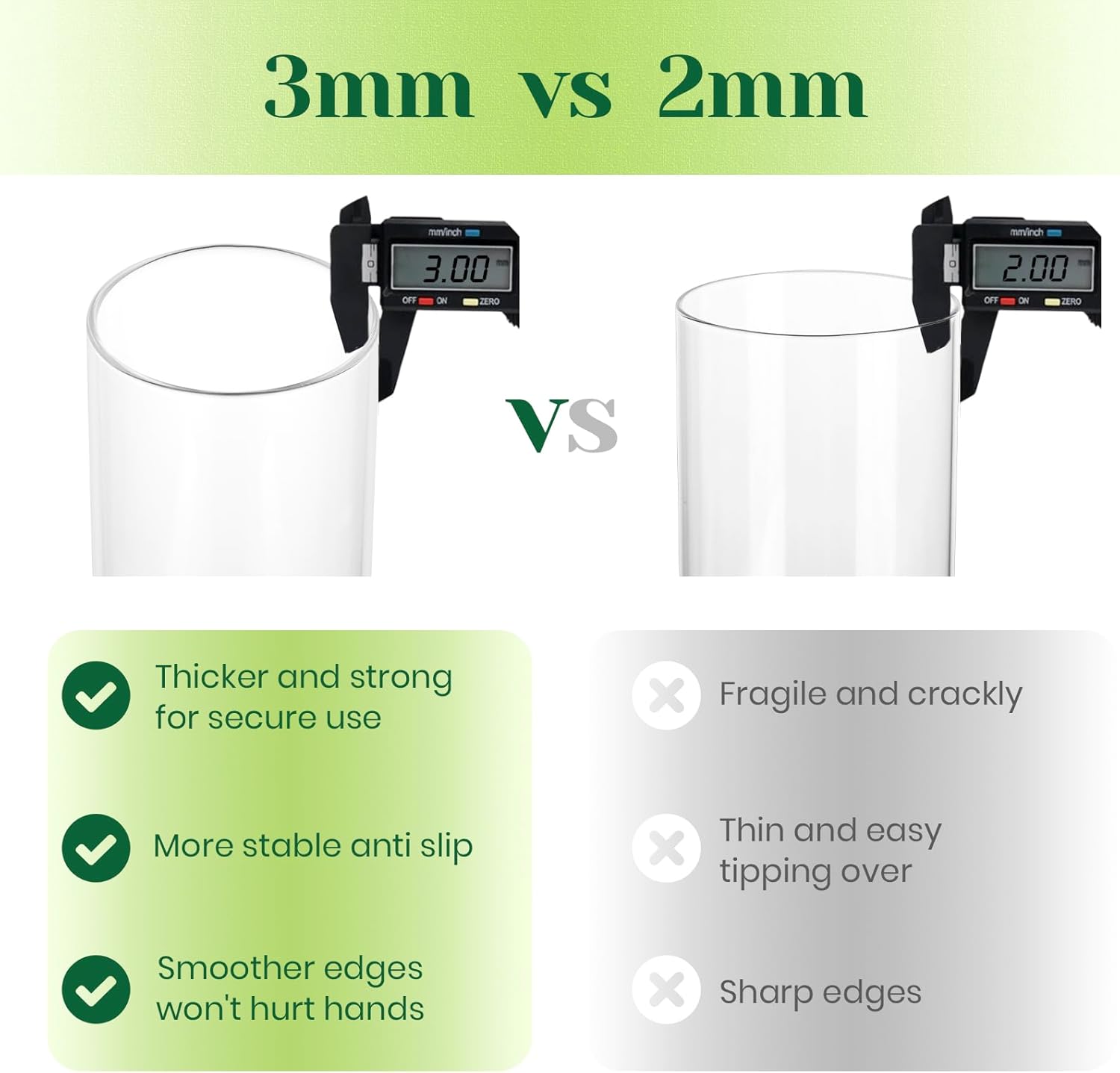 2. Upgraded 3mm Thickness, made from sturdy, crystal-clear glass, these glass cylinder vases for centerpieces are both durable and elegant, offering exceptional value for money.