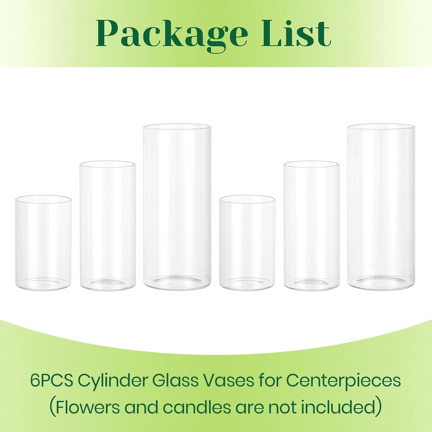 Hewory Thickened Glass Cylinder Vases: Set of 6 Clear Flowers Vases for Wedding Home Table Centerpieces Decorations – Hurricane Candle Holders for Floating Pillar Candles