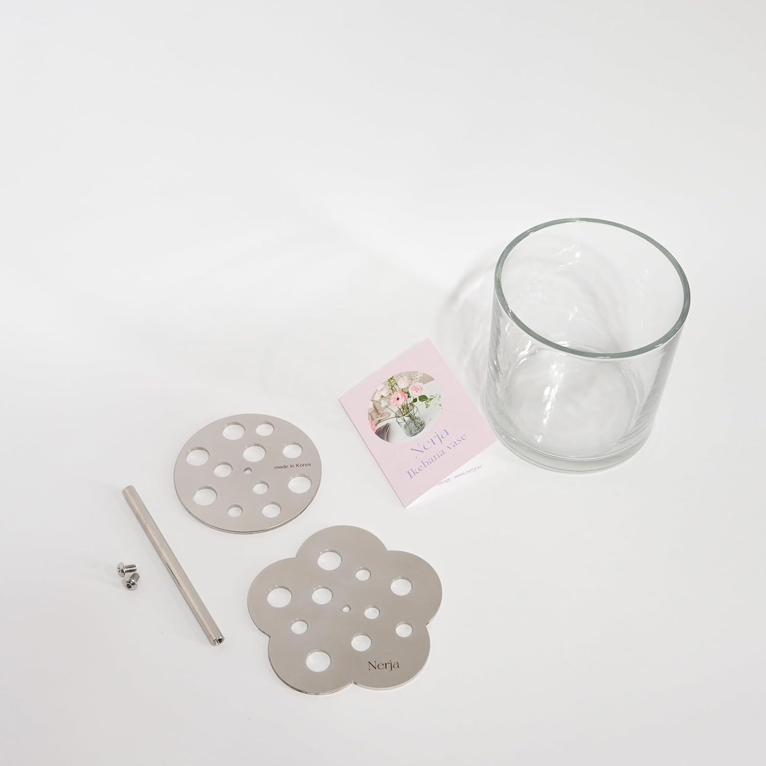 *The vases require assembly, but can easily be put together by following the enclosed instructions. *Components: Ikebana Top Plate (1), Bottom Plate (1), Support Rod (1) , Bolts (2), Glass Bowl (1) _Round Basic, M, L, Flower *Components: Ikebana Top Plate (1), Bottom Plate (1), Support Rod (2) , Bolts (4), Glass Bowl (1) _Long M, L , Wave M, L
