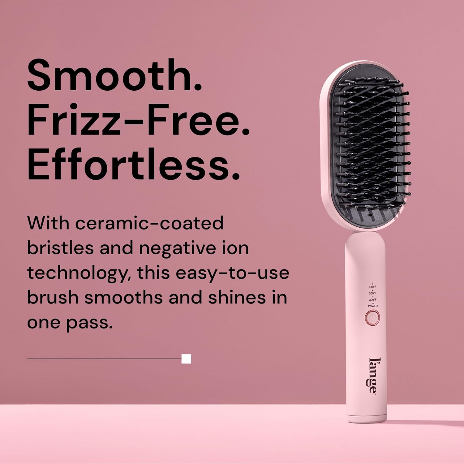 L’ANGE HAIR Mane Pass Straightening Hot Brush | Hair Straightening Brush with Ceramic Bristles & Negative Ion Technology | Adjustable Temp | Auto Shut-Off & Dual Voltage | (Blush)