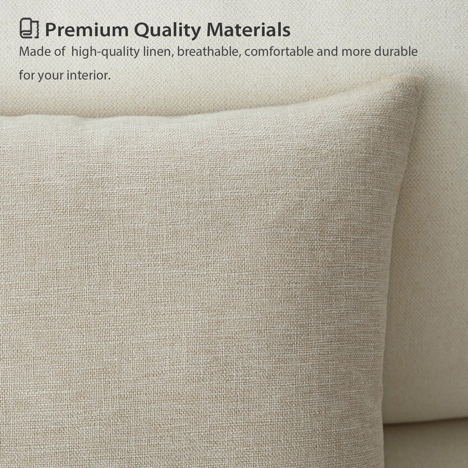 Meekio Set of 2 Linen Beige Pillow Covers 20×20, Farmhouse Linen Decorative Throw Cushion Covers for Sofa Couch