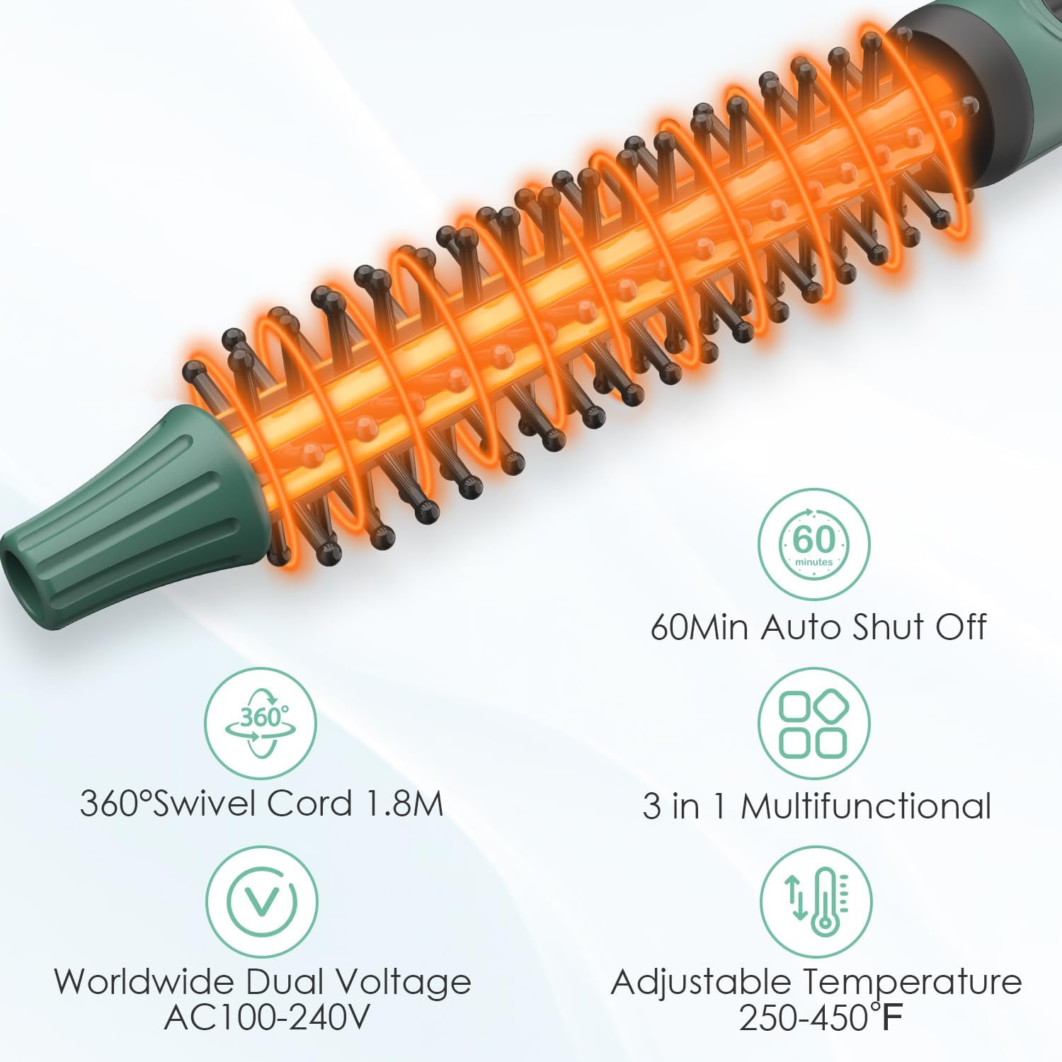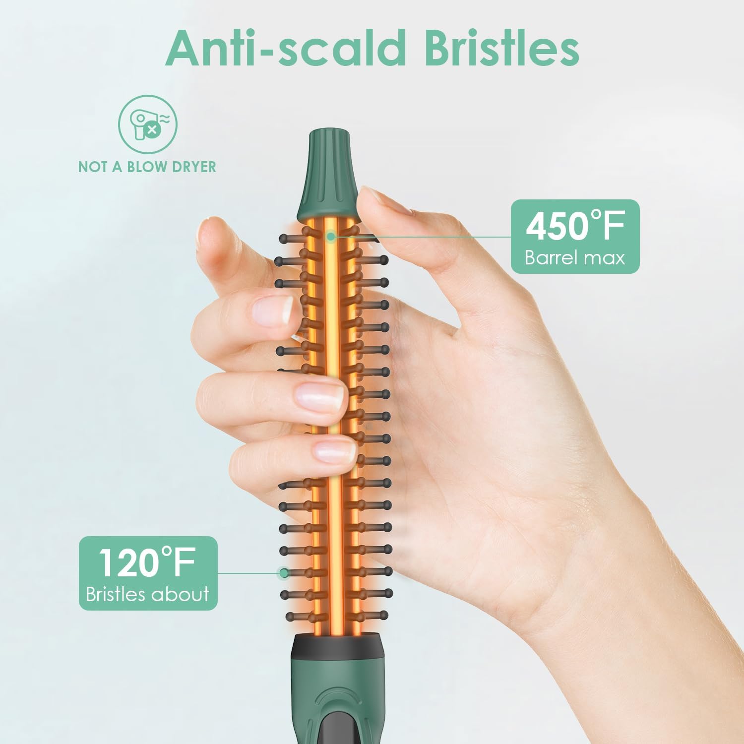 Safe Curl Styling: Our hot curler hair brush comes with anti-scald bristles and a long cold touch handle. This means if you set the max temperature to 450℉ to get professional styling effects without worrying about burns as well.