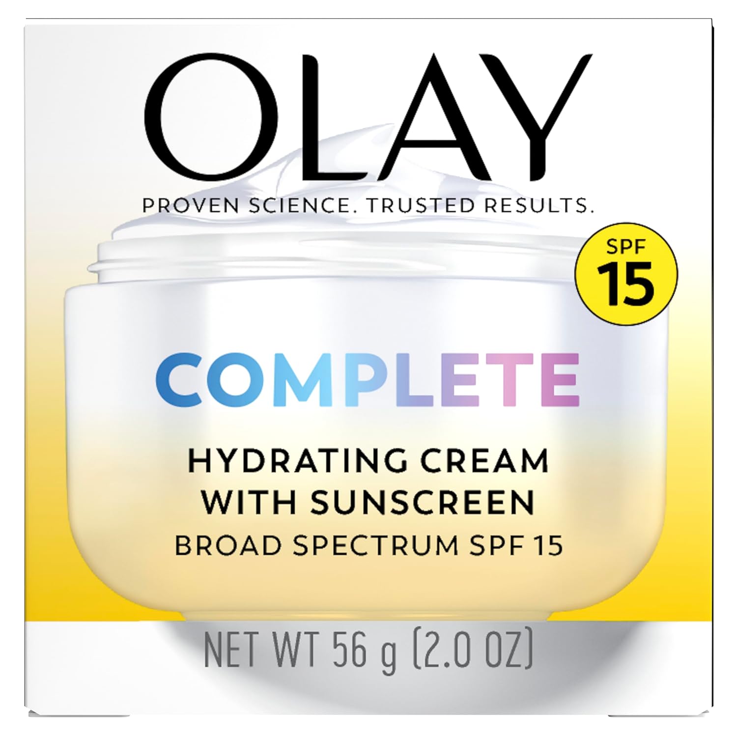 Protect against the number one cause of aging skin—damage from the sun—with Olay Complete All Day SPF 15 Facial Moisturizer. This 2-in-1 moisturizer and sunscreen provides broad spectrum UVA and UVB protection while delivering 48 hours of hydration, making it an essential part of your daily skincare routine. Infused with Niacinamide, Vitamin C, and Vitamin E, this formula nourishes the skin, providing hydration while protecting beautiful, younger-looking skin. Unlike many facial moisturizers with sunscreen, Complete All Day facial moisturizer is non-greasy and oil-free, leaving your skin with a healthy glow. Designed to blend seamlessly into all skin tones, this breathable SPF moisturizer offers effective sunblock protection with a non-greasy finish and no white cast. This fragrance-free sunscreen is non-comedogenic and free of parabens, synthetic dyes, and mineral oil, making it ideal for anyone’s sun care routine.