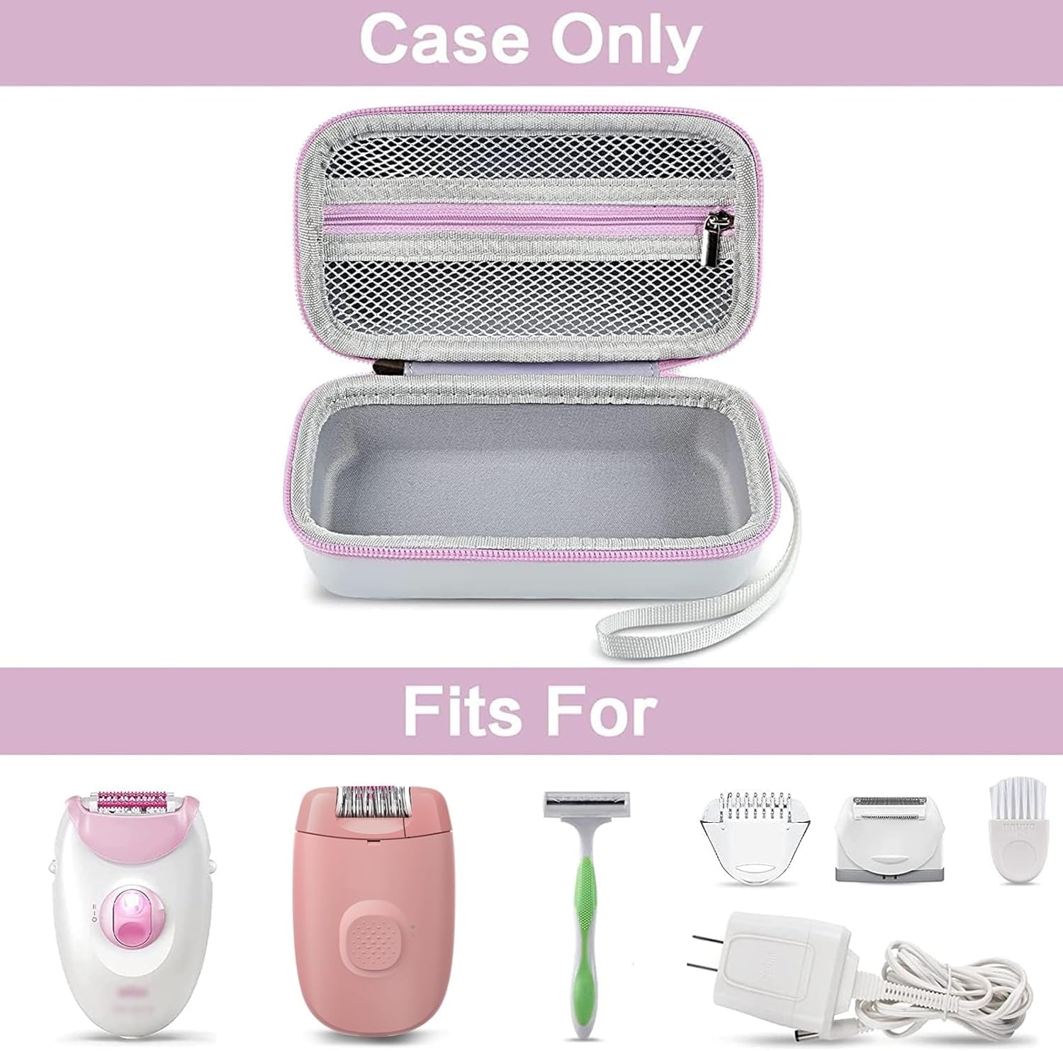 Features a Zippered Mesh Pocket & Organized Layout for All Epilator & Shaver Accessories. The built-in mesh pocket and dedicated compartments keep every accessory – from shaver heads and trimmer caps to charging cables for electric shavers or bikini trimmers – neatly separated and secure. Perfect for storing facial epilator attachments or intimate shaver parts, ensuring a tidy beauty routine whether in your bathroom or during travel