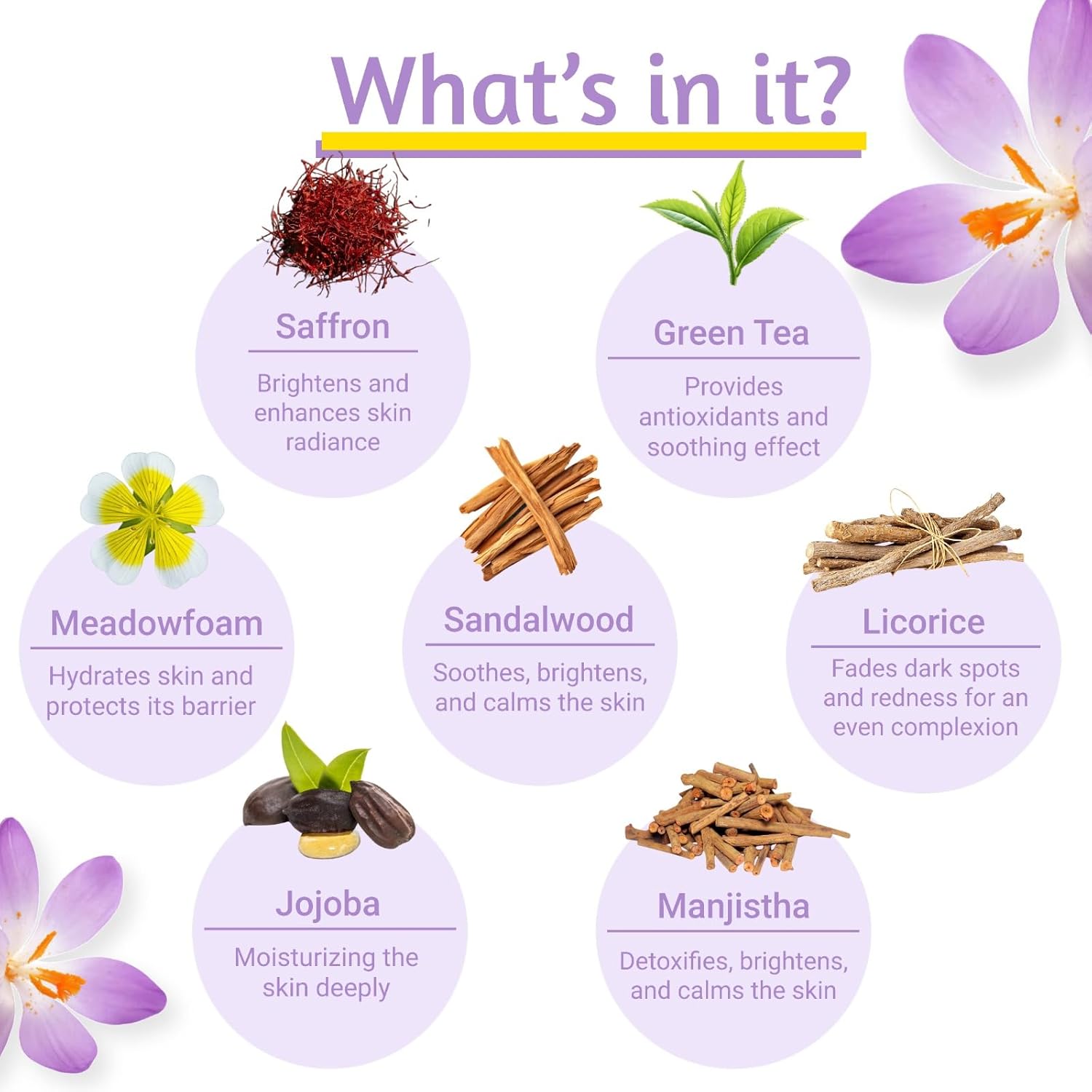 Premium Saffron Extract: Infused with 100% natural saffron extract for a radiant glow and improved skin texture.