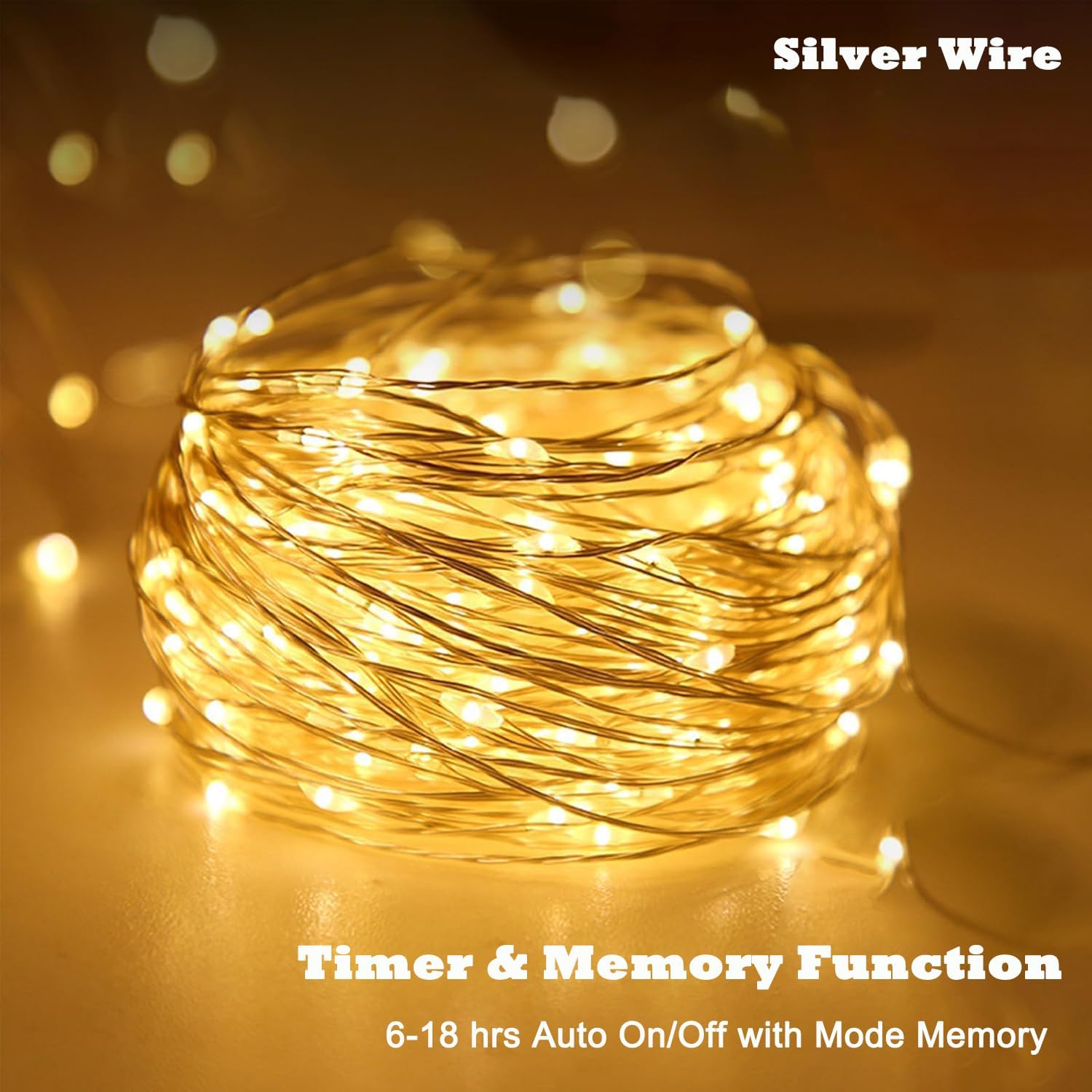 Beingreat 2 Pack Fairy Lights, 33FT 100 LED Warm White Copper Wire Lights – USB Powered, 8 Modes, IP65 Waterproof with Timer & Memory Function for Indoor Outdoor Decoration