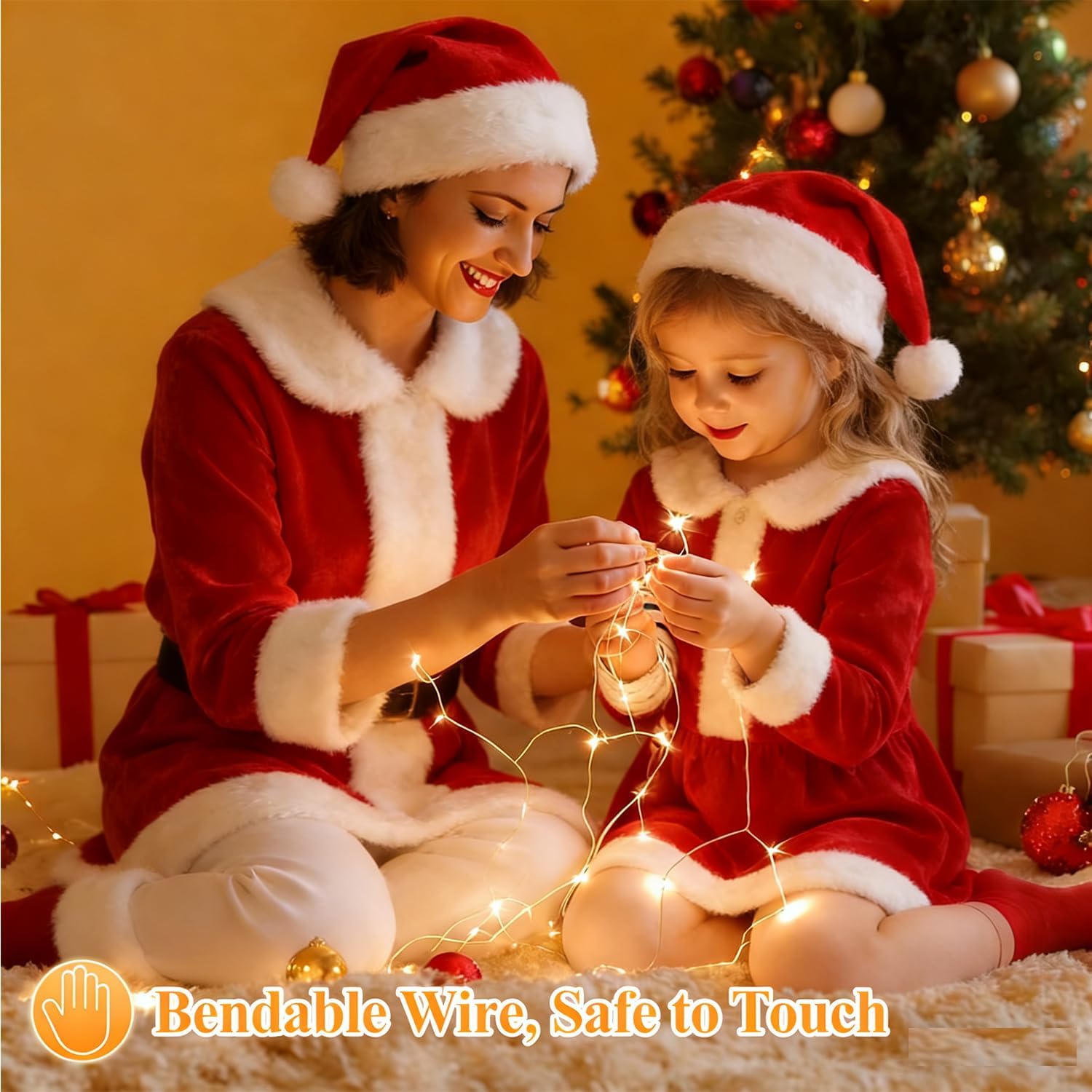 2 strands (33ft/100 LEDs each) for double creativity! Ultra-flexible copper wire bends freely—wrap around Christmas trees, hang on walls, drape over mirrors or weave through floral arrangements, perfect for DIY crafts and custom themes.