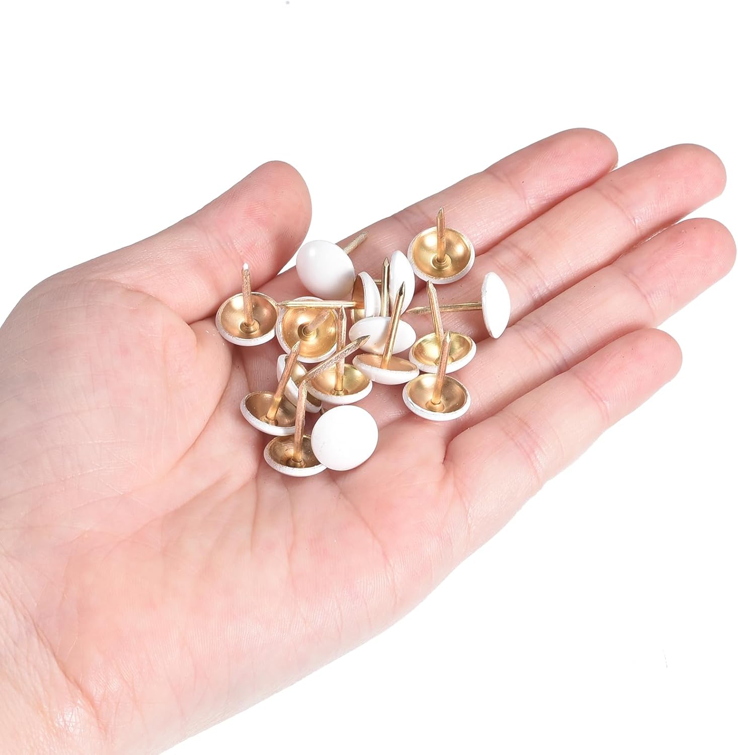 uxcell Upholstery Tacks Nail Pins Furniture, 200Pcs 11x17mm Thumb Tack Pins Assortment Kit Carbon Steel for Home Sofa DIY Decorative Nail Heads Nails, White