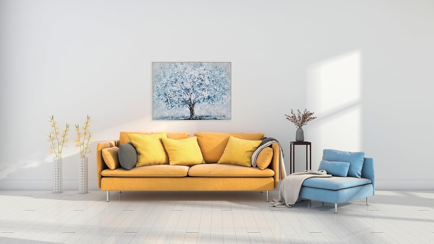 This Yihui Arts Blue Tree of Life canvas wall art is meticulously hand painted, ensuring a unique and exquisite piece for your living room, bedroom, or bathroom decor.